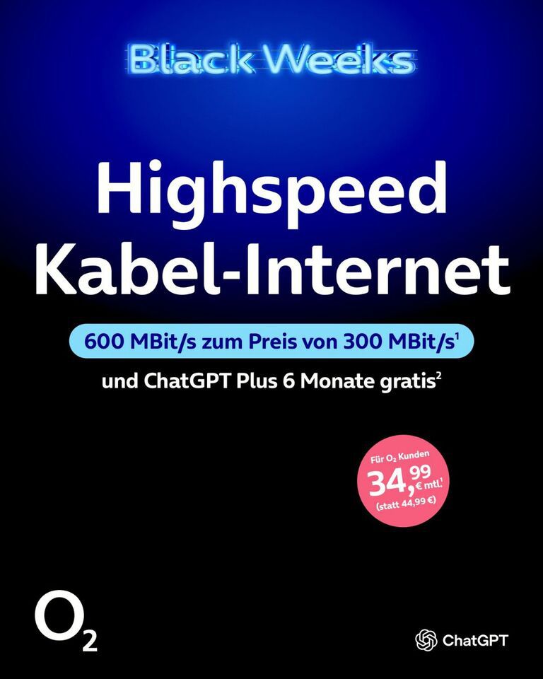 600 MBit/s zum Preis von 300 MBit/s – und 6 Monate ChatGPT Plus gratis.